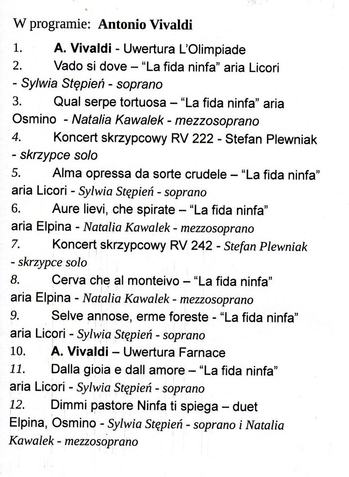 Wenecki kompozytor Antonio Vivaldi zaprezentowany został przez orkiestrę Cappella dell” Ospedale della Pieta.
