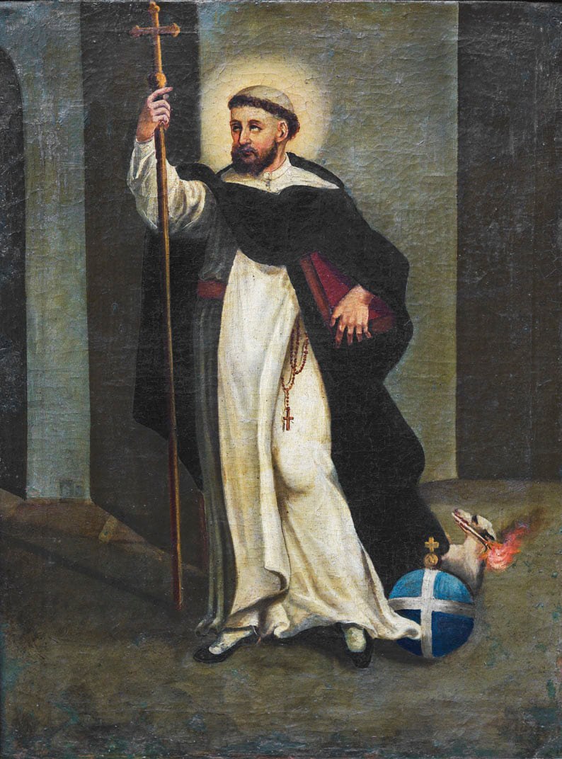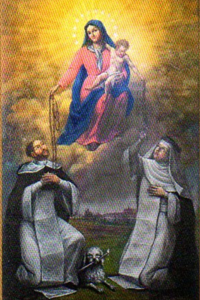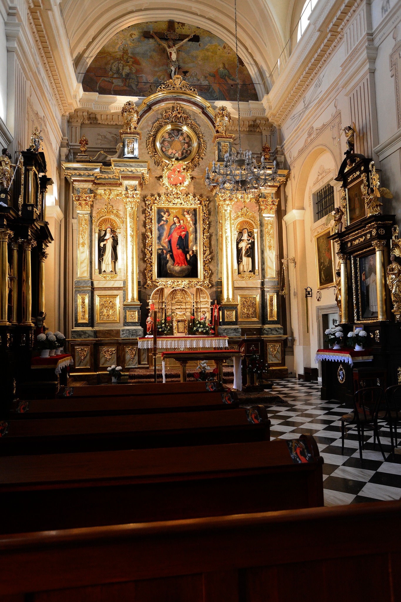 Na dzień powszedni był zasłonięty wizerunkiem M.B. Różańcowej z klęczącymi u Jej stóp świętym Dominikiem i św. Katarzyną ze Sieny.